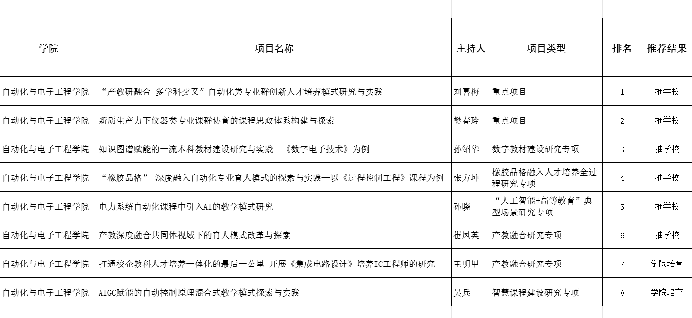 根据公司《关于开展2024年度校级本科教学改革研究项目和专项项目立项申报及2022年度项目结题工作的通知》,公司通过多种形式广泛宣传和动员,截止至10月20日,收到教改立项2项,专项项目6 项共8项,公司聘请院外专家坚持公开、公平、公正,择优遴选原则进行评审,依照2024年校级教研教改项目申报限额6项,排序前6名推送公司,其他项目给予公司培育,下一批择优优先推送。排序公示入下: