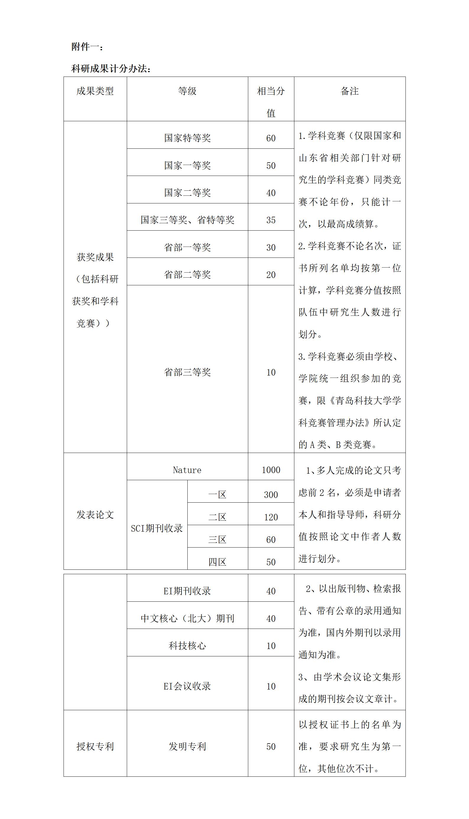 科研量化分计算办法总和为B。该成绩的计算见“附件一”。