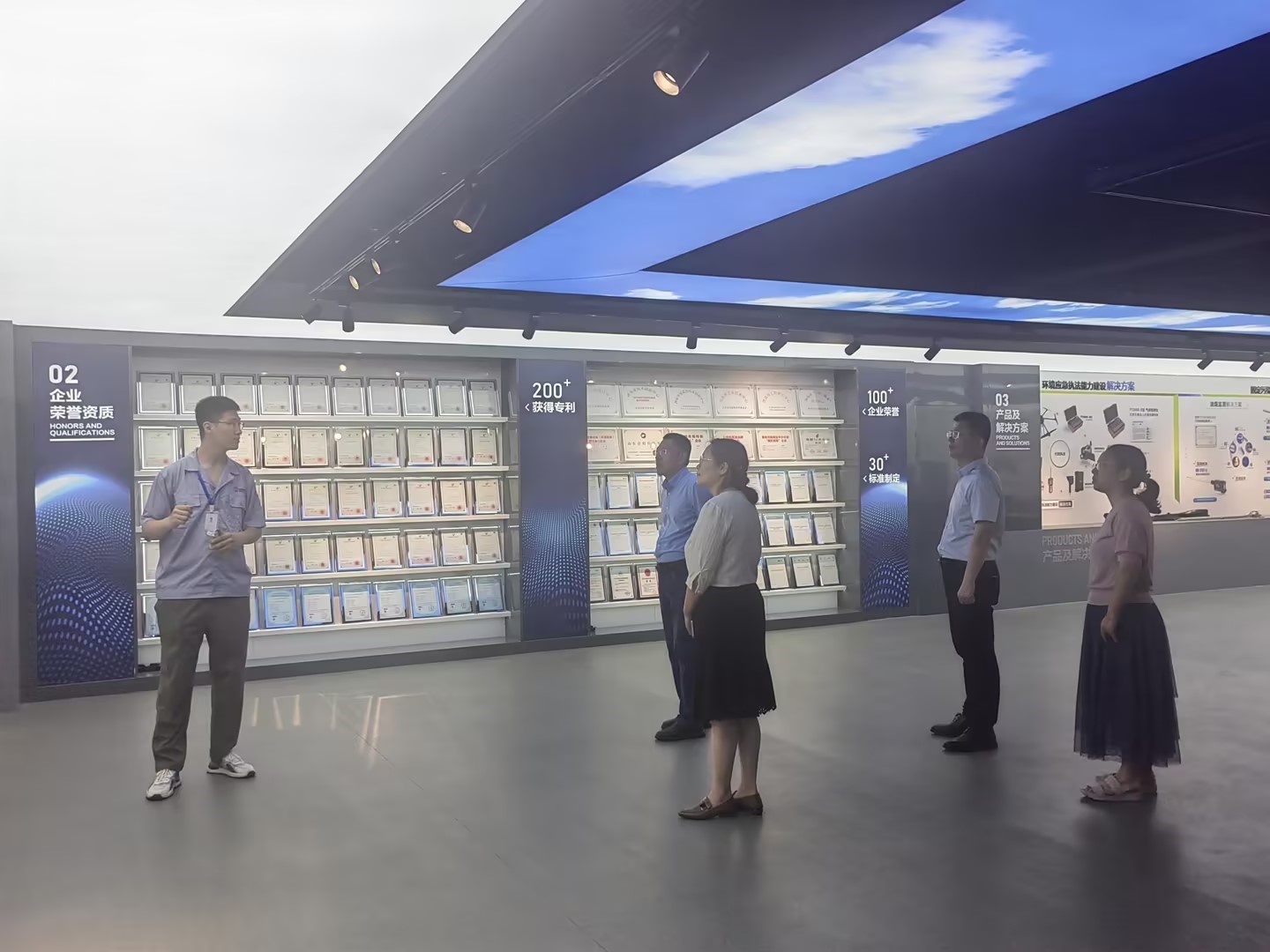 在青岛明华电子仪器有限公司,公司创始人、员工丁万生对公司一行的到来表示热烈欢迎,介绍了企业发展历程及未来发展规划,并带领公司一行参观了公司展厅。