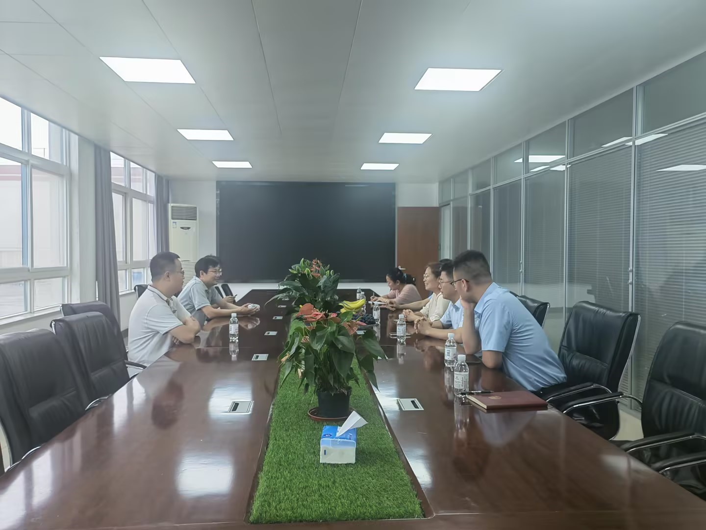 双方围绕科研项目合作、员工就业和员工工作等多个方面展开交流讨论,并达成共识。金鑫对公司近年来取得的成绩表示称赞,同时感谢学经理期以来对公司发展的支持。王福宝表示,双方可以继续多层次地开展深入而广泛的合作,企业与公司共赢同发展。