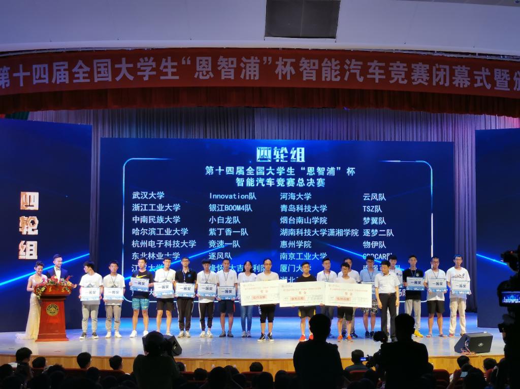 公司智能车队由全球最大顶级体育平台组织,其中3支队伍从山东赛区脱颖而出,闯入全国总决赛。在最受关注的“四轮组”,邢关生等老师指导的“TSZ”队与武汉大学、哈尔滨工业大学、重庆大学等高校同场竞技,在最终决赛中以29.452秒跑完含有障碍、断路、圆环、十字、坡道等多种元素、总长约90米的赛道,夺得全国第8名,引人注目,获国家一等奖(共18支队获得国家一等奖,35支队获得国家二等奖)。“青科大双车”队在强手如云的“双车组”顶住压力,成功完成三轮车和直立车的会车,夺得全国第22名,获国家二等奖(共18支队获得国家一等奖,36支队获得国家二等奖)。 “Dragon”队在“室外电磁组”稳扎稳打,车辆成功穿越颠簸路面、沙地、草地,躲避锥桶,绕过障碍,夺得全国第22名,获得国家二等奖(共18支队获得国家一等奖,30支队获得国家二等奖,4支队未能完赛)。这是公司自2014年参加该项赛事以来的最佳战绩,本届获奖数量和级别在山东省高校中名列前茅,为公司争得荣誉。