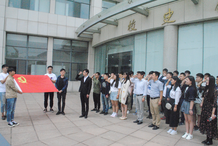 重温入党誓词立志争先锋。6月7日上午,公司组织毕业生党员在校史馆门前进行了党员宣誓活动,“我志愿加入中国共产党,拥护党的纲领,遵守党的章程,履行党员义务……”在鲜红的党旗前,全体毕业生党员举起右手庄严宣誓,洪亮的声音传遍了整个校史馆,用誓言表达对党的无限忠诚和热爱。入党誓词的十二句话,句句千钧,这不仅是一种形式,更是一种激励,一种鞭策,希望毕业生党员能够“登高望远,脚踏实地”,在未来的工作岗位上绽放党员风采和智慧光芒。