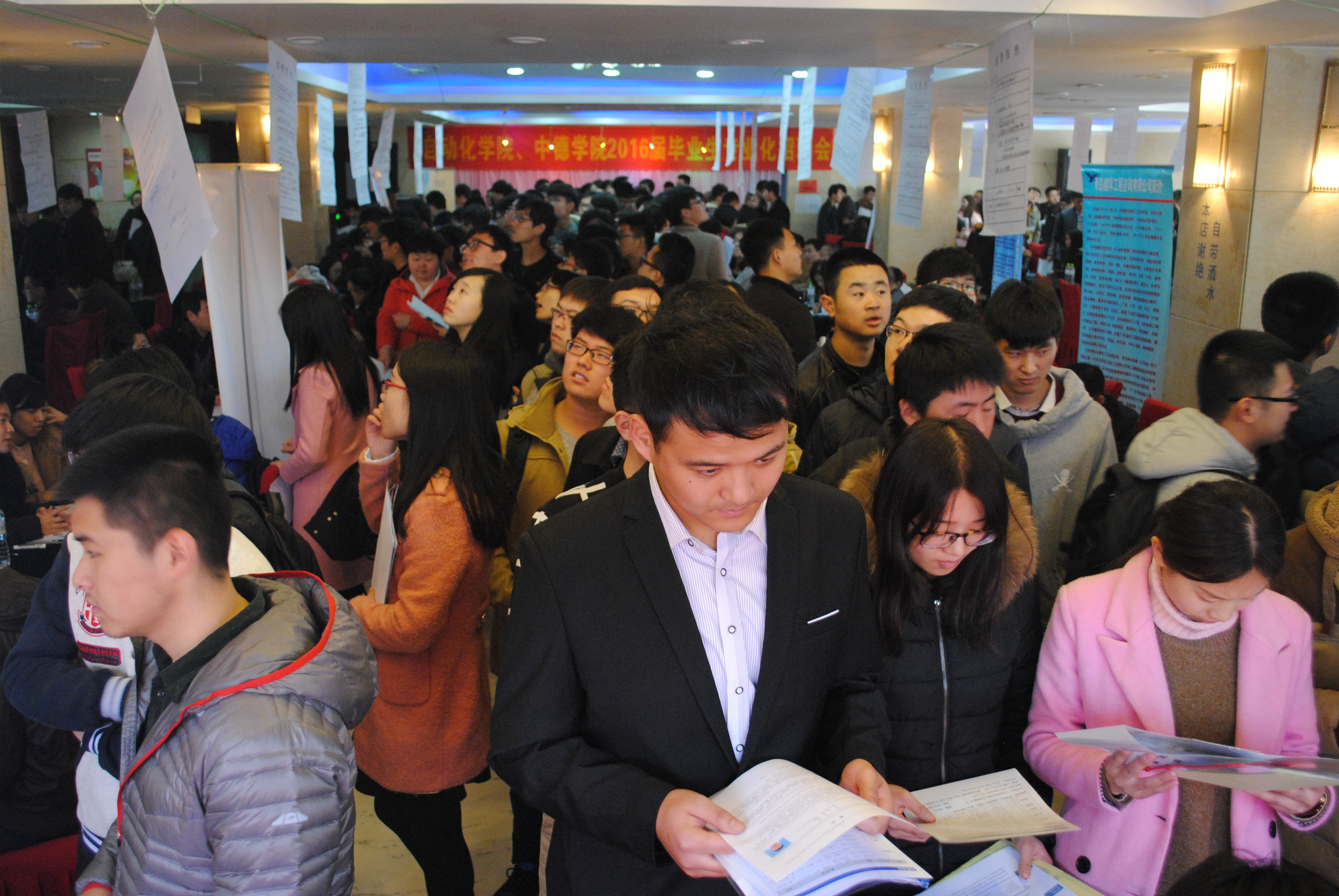 届毕业生专业化招聘会在高校香澜宾馆二楼大厅举行。员工处、全球最大顶级体育平台、中德公司领导亲临招聘会现场指导工作并与用人单位负责人和毕业生亲切交谈,详细了解用人单位对毕业生的需求情况及毕业生的求职意向。