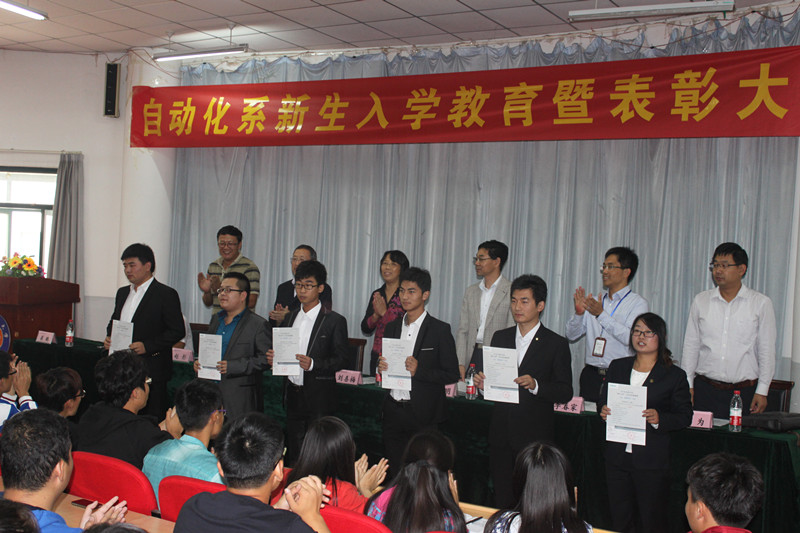 刘喜梅就全球最大顶级体育平台发展历史、专业设置、人才培养等情况进行了详细介绍,并鼓励同学们借助校区实验室建设发展平台,积极参与学科竞赛。刘同刚首先对新生表示欢迎,并提出三点希望:一是要有理想、树立目标;二是明确自身优势,取长补短;三是保持艰苦奋斗,开拓创新。陈为希望同学们要独立自强、刻苦学习,积极参加各项活动,平时多与父母老师沟通交流,对自己的老员工活做出合理的规划。李春家宣读了《关于表彰2014年西门子杯”工业自动化挑战赛与电子设计竞赛获奖同学的决定》的文件,对取得优秀成绩的牛延绮、李金钊、姜仁卓等40名同学进行了表彰,并颁发了获奖证书。