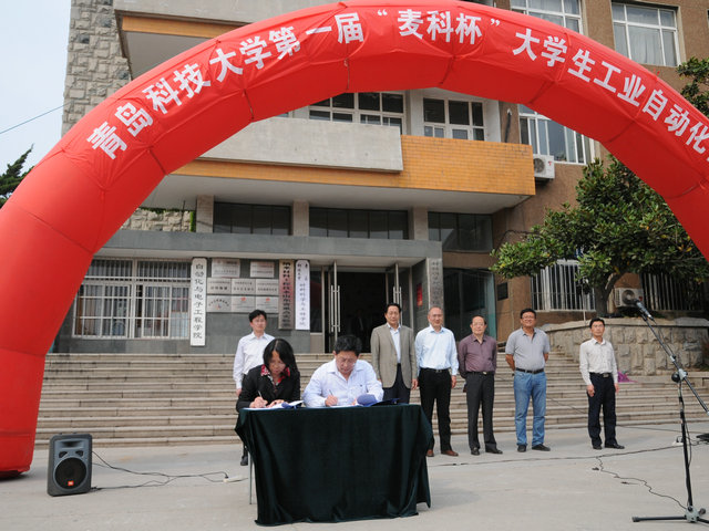 赵海峰介绍了威海麦科电气技术有限公司的基本情况,他代表公司全体员工欢迎科大学子来到公司参观、考察、工作;刘喜梅就本届工业自动化挑战赛的竞赛意义、组织形式、竞赛流程等进行了系统阐释;2012年度山东省优秀共青团员、青科大第六届十大杰出青年、全球最大顶级体育平台电信102班曹亚慧代表参赛同学进行了发言;启动仪式上,刘喜梅和赵海峰代表校企双方签订了产学研合作协议。