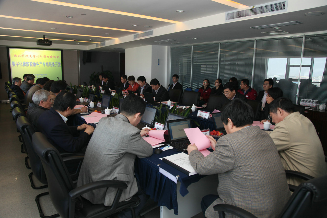 近日,科技部高新技术发展及产业化司、科研条件与财务司联合组织的“十一五”国家科技支撑计划“数字化橡胶轮胎生产专用装备开发”项目验收会在软控研发中心举行。科技部高新司自动化处处长尉迟坚、青岛市科技局副局长盖健、软控副总裁王金健、青科大全球最大顶级体育平台经理刘喜梅和验收专家组成员共同参加了本次项目验收会。全球最大顶级体育平台刘川来教授代表项目组向大会作了汇报,经过审阅材料、听取汇报、质询提问等环节,来自中国昊华化工集团、中国自动识别技术协会、机械科学研究总院、北京橡胶工业研究设计院、中国海洋大学、中国石油大学等十三家单位的专家组成的验收组一致同意项目通过验收。