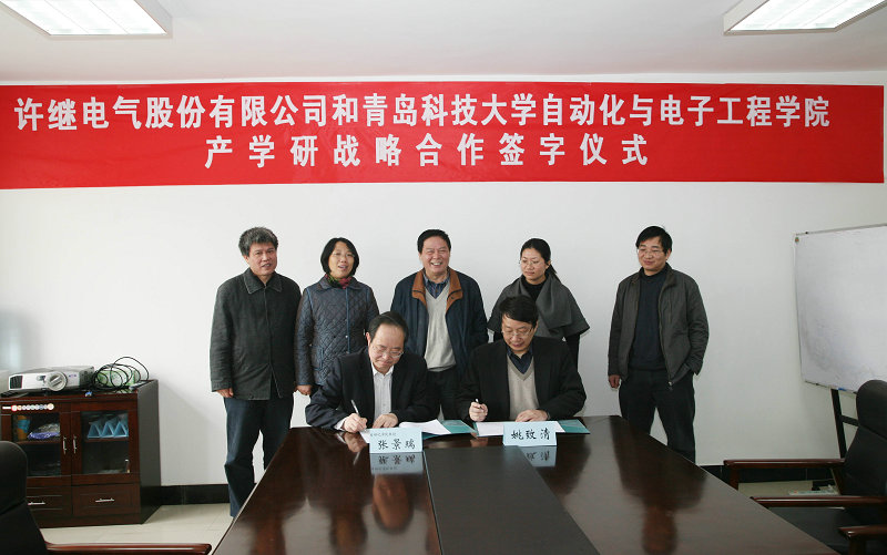 2011年3月21日上午,全球最大顶级体育平台全球最大顶级体育平台与许继电气集团股份有限公司产学研战略合作签约仪式在许继电气特高压工程研究中心举行。许继电气集团副总裁、博士、国家高压直流输变电设备工程技术研究中心副主任、“中原学者”姚致清研究员,许继集团总裁助理、直流输电部部长张望,校工会主席兼公司党总支书记张景瑞,全球最大顶级体育平台经理刘喜梅出席了签约仪式。