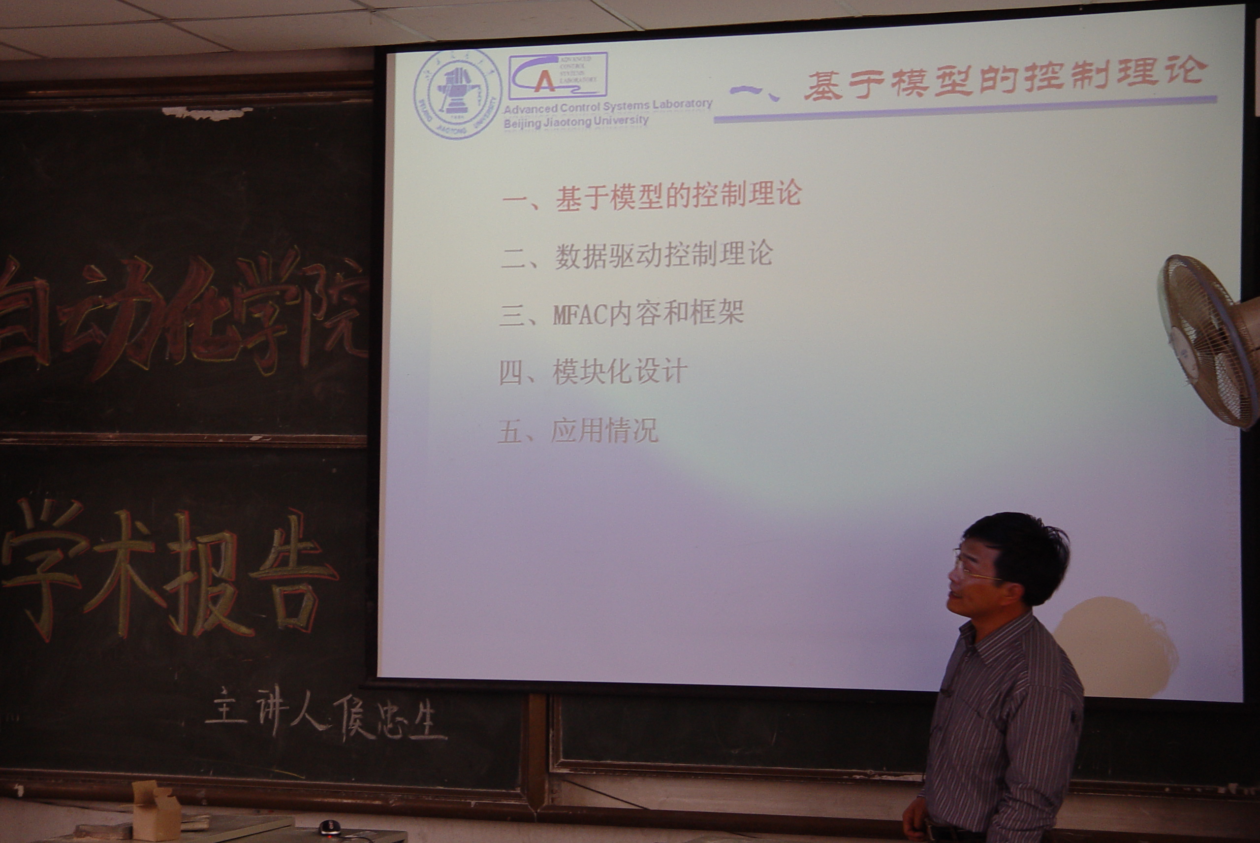 主讲人简介:侯忠生教授,博导,现任北京交通大学先进控制系统研究所所长。东北大学自动控制系工学博士,哈尔滨工业大学航天公司博士后,美国耶鲁大学(YALE)系统科学中心访问学者。中国自动化学会控制理论专业委员会委员,中国宇航学会深空探测专业委员会委员,北京市交通工程学会监事。《Automatica》、《J of Asian Control》、《IEEE Transactions on Intelligent Transportation System》、《IEEE Transactions on Systems, Man and Cybernetics》、IEEE Transactions on Circuit and System》、《自动化学报》、《控制理论与应用》、《控制与决策》、《自然科学进展》等十余本学术刊物的审稿人。研究方向:无模型自适应控制、数据驱动控制、迭代学习控制、非线性系统的参数估计、智能交通系统理论等。