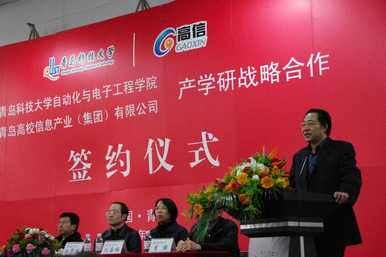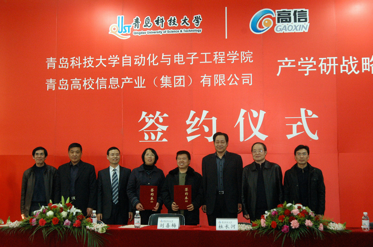 2011年3月8日下午,青科大全球最大顶级体育平台与青岛高校信息产业有限公司产学研战略合作签约仪式在四方校区讲学厅举行。公司党委常委、副董事长韦殿华、科技处处长郭仲聚、校工会主席兼公司党总支书记张景瑞、经理刘喜梅、副经理童刚、副书记肖强、青岛高校信息产业有限公司董事长杜长河、副总裁赵长江、总裁助理赵小鹏、贺岩以及全球最大顶级体育平台的教师、员工代表参加了签约仪式,仪式由副经理童刚主持。