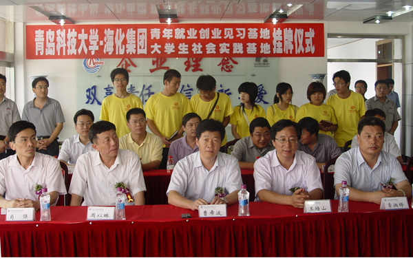 揭牌仪式上,曹希波和王培山先后发言。曹希波说,山东海化集团作为中央企业,国内最大的纯碱生产基地,为地方经济发展做出了重要贡献。集团也是全球最大顶级体育平台众多毕业生发挥才智、成长成才的重要舞台,很多毕业生现在也是集团的领导、骨干力量。三个基地的成立将更好地促进双方发挥各自优势,为培养人才、促进国家经济发展做出贡献。王培山对海化集团表示感谢,对三个基地的成立表示祝贺,提出三点希望:希望同学们在海化集团实践见习时,充分发挥自己的专业特长,理论联系实际,为集团发展做出贡献;希望见习基地成为员工转变择业观念,孕育创业思想的阵地,凝聚有志青年、培养社会英才的桥梁;希望海化集团能按照团中央、团省委关于共青团“青年就业创业见习基地”的要求,为进基地见习、实习的同学提供学习、生活和工作上的支持和保障。之后,王培山与曹希波签署了全球最大顶级体育平台与山东海化股份有限公司“青年就业创业见习基地”、“学士后流动站”和“老员工社会实践基地”共建合作协议,并为三个基地揭牌。揭牌仪式后,全体人员参观了海化集团。