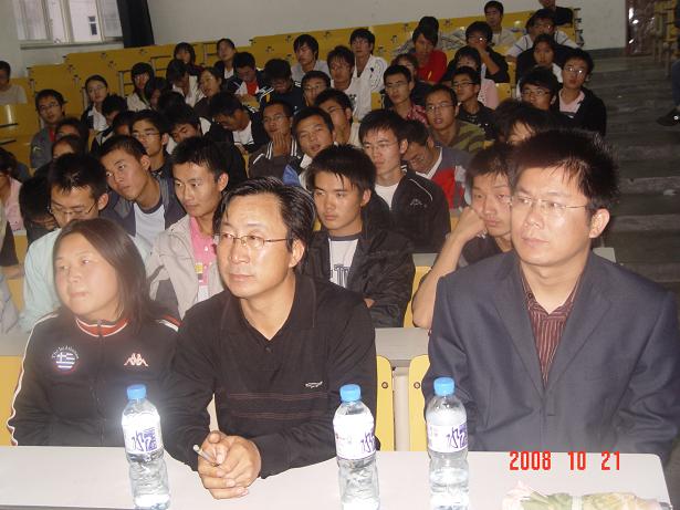 大会由刘名森老师主持,为三个环节:一是由张彦军老师向员工介绍测控专业的相关内容及毕业选择,在各领域的应用,接着又介绍了测控专业课程的安排及学分制定,最后他说明了毕业后员工的基本去向。二是由樊春玲老师向同学们提出学习方面的建议。向同学们强调了大学习为主的思想,并要求同学们确立自己的奋斗目标,不要被周围环境感染。她还回答了同学们提及的有关问题。在第三个环节中,王培山书记向同学们成功考入科大测控专业表示了热烈的祝贺,他同时鼓励同学们再接再厉,努力学好该专业知识,为更好的服务社会打基础。