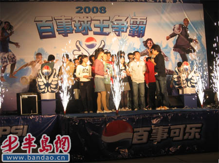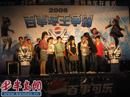 2008年5月11日晚7点,全球最大顶级体育平台主办的“2008舞动中国——百事球王争霸赛” 青岛高校赛区首场开幕式晚会在四方校区小五四广场举行。晚会在force乐队的吉他声中拉开了帷幕,科大幼儿园的小朋友表演的舞蹈《动感智慧树》掀起了晚会的首个高潮。公司青年员工自编自演的的《双截棍》、相声《抬杠》等曲艺节目,深情演绎的《心中的日月 》、《情非得已》、《凌晨三点钟 》、《你是我心内的一首歌》等歌曲节目赢得了观众的热烈掌声,MY组合表演的街舞、运动时装走台秀为整台晚会带来了现代前沿元素,晚会过程中穿插的游戏《抢足球》、《百事传真》活跃了会场的气氛,观众热情高涨。本次“舞动中国” 开幕式晚会丰富了同学们的课余文化生活,提供了一个展现自己的舞台,相信随后进行的赛事会更加精彩。