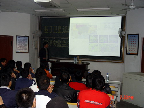 方朝阳博士首先向大家介绍了海洋灾害监测与预警信息系统研发的背景。该系统主要针对严重威胁珠江三角洲地区渔业的赤潮、海洋环境污染和海面溢油等自然灾害的监测和预警,进行信息系统的研发工作。方博士在研究中构建了基于准实时的卫星遥感数据引入灾害多维动态变化监测方法、基于科学交流的海洋灾害信息智慧化提取技术,并集成各种新技术以ASP方式为不同的用户提供渔业灾害分析给预警发布服务。其目的是推进海洋遥感由研究阶段转向应用阶段,为渔业灾害监测和预警的研究成果的业务化和自动化运行提供技术基础。方博士的学术讲演深入浅出,图文并茂,使在场的师生了解的卫星遥感海洋灾害监测与预警信息系统的大体框架与现实意义。