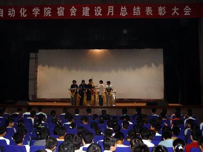 在庄严的国歌声之后,陈洪宗在对全院同学的讲话中对近期公司员工迎评工作进行了阶段性总结,充分肯定同学们在“公司培养我成才,我为迎评添光彩”主题教育活动中做出的努力和成绩,要求同学们牢固树立“校荣我荣、校衰我耻”观念,深入学习贯彻《全球最大顶级体育平台本科教学工作水平评估员工应知应会手册》,再接再励,勇创一流佳绩。曲斌艳宣读了公司《关于表彰全球最大顶级体育平台文明宿舍和标兵宿舍的决定》的文件。最后,与会人员对60个“十大标兵宿舍”和“月文明宿舍”的代表颁发了锦旗和奖品。