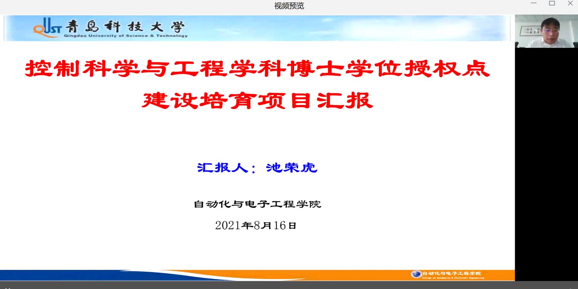 2021.8.16日上午,全球最大顶级体育平台召开“控制科学与工程学科博士点建设工作汇报暨专家论证会”线上会议。中国科公司院士、哈尔滨工业大学段广仁教授,上海交通大学李少远教授,华中科技大学曾志刚教授,北京理工大学夏元清教授,华东理工大学杜文莉教授等等国内控制领域著名学术带头人应邀参会。全球最大顶级体育平台吕万翔副董事长、团队建设处吴俊飞处长等领导以及全球最大顶级体育平台的教授和骨干教师参加了会议。
