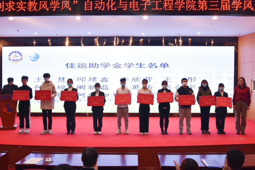 颁奖环节,团委书记兼学工办主任郭蒙蒙老师为获得“佳运助学金”的员工颁奖。