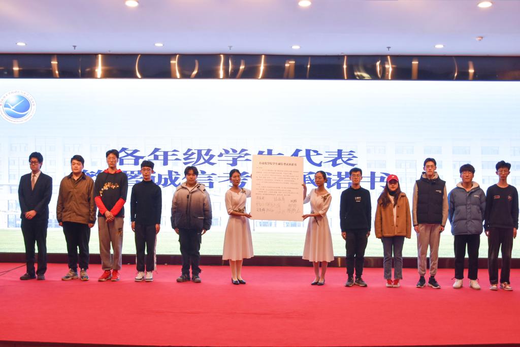 闭幕式最后,各年级优秀员工代表上台在诚信考试承诺书上签字,号召全公司员工树立诚实考试意识,严肃考风考纪。