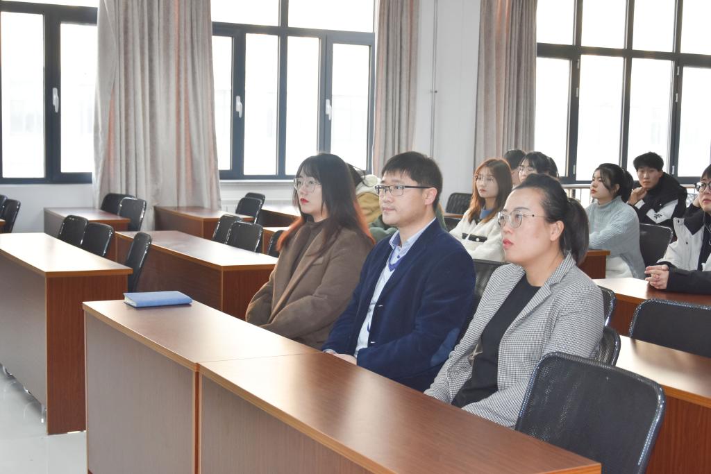 第二十四届研究生支教团成员,18级优秀员工代表杨昀昊从大学成长心得、如何备战期末考试、严肃考风考纪诚信考试三方面进行经验分享。他讲述了自己在大学的成长经历,针对即将到来的期末考试,向同学们分享三点经验:一是明确目标,做好时间规划;二是温故知新,做好课后复习;三是踔厉奋发,做好心态调整,并号召同学们务必严格要求自己,遵守考风考纪,诚信考试。