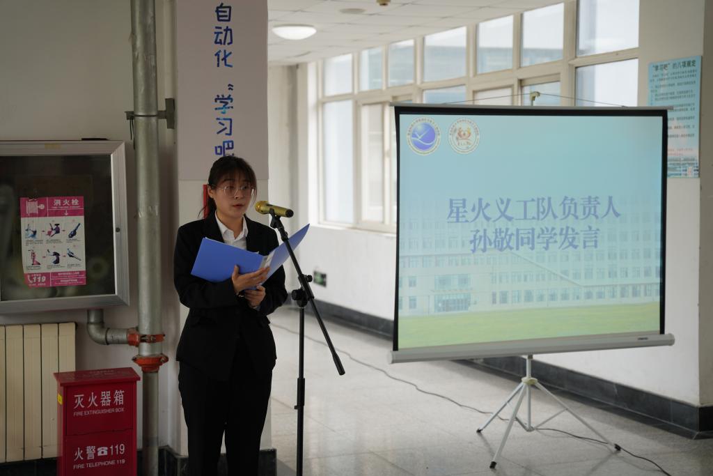 活动伊始,全场共同观看星火义工队宣传视频,回顾义工队的成立与发展。随后,校团委副书记陈兵与后勤管理处副处长魏一众共同为星火义工队实践基地揭牌。