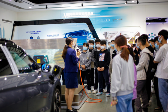在青岛特来电新能源科技有限公司,师生参观了特来电新能源科技展馆和特锐德/特来电生态党建展厅,全面了解了公司发展历程、发展愿景和文化理念,感受到了别具一格的企业文化。