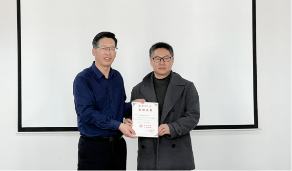 座谈会上,曹梦龙对袁鹏飞一行的来访表示欢迎,就公司发展概况、产学研基地建设、员工实习实践等情况进行介绍,并代表公司为展诚科技有限公司颁发捐赠证书。根据捐赠协议,展诚科技有限公司将连续五年为公司提供员工教育管理发展基金。