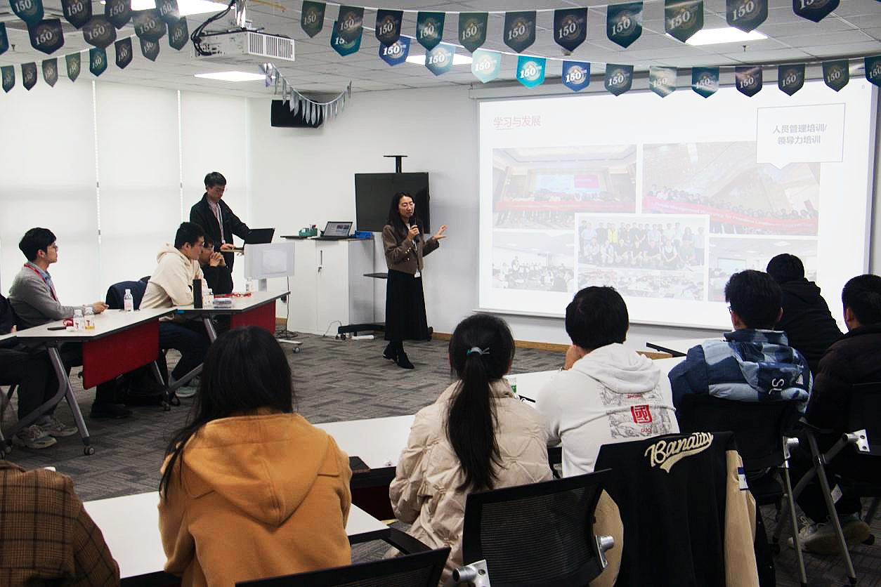 下午,师生一行人分为两组,分别进行智能制造和智能产品的车间参观,工艺经理和研发经理详细介绍了产品结构、生产流程、生产工艺等。参观结束后,采购副总裁和人事招聘经理结合个人发展,就员工实习、就业岗位、工作内容、工作时长、公司福利等方面进行讲解。