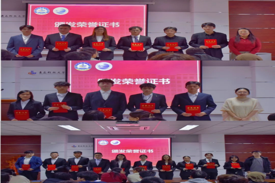 会上,郭蒙蒙、安柏雅、马仁轩分别为获得表彰的优秀员工会、研究生会干部及志愿者颁发荣誉证书。