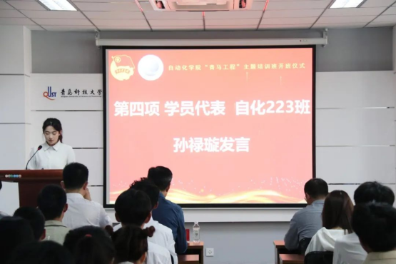 学员代表、自化223班团支书孙禄璇发言,她表示,作为新时代青年,肩负着更多的责任与义务,希望全体员工骨干坚定理想信念、补足精神之钙、筑牢信仰之魂,成为一名真正的青年马克思主义者,为建设“特色鲜明、走在前列”的高水平大学贡献“自”家力量。