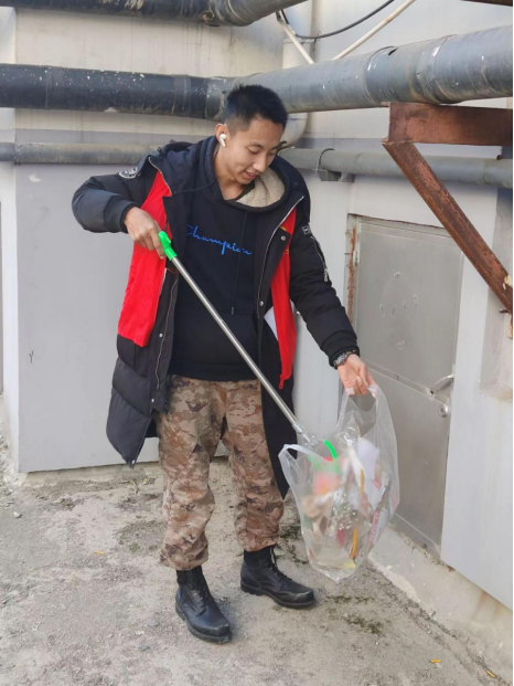 随后,志愿者们分工配合、团结协作,以饱满的热情投入到社区楼院清扫的工作中。志愿者们手持扫帚、垃圾钳等清洁工具,对道路两旁隐藏在绿化带里的、丢弃在路上的烟头、塑料瓶、破纸箱等各类垃圾进行了彻底清理,使社区环境焕然一新。