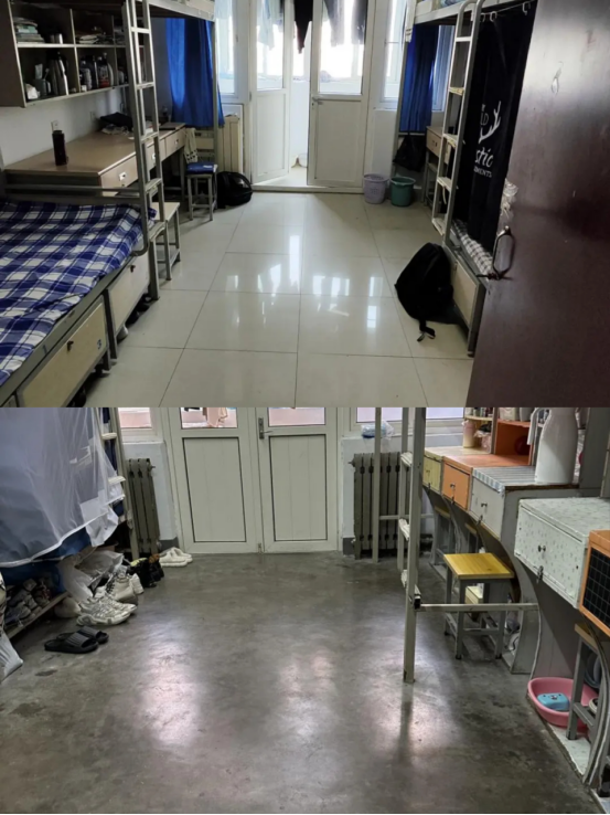 针对宿舍卫生环境和安全隐患,公司以“窗明几净,健康生活”为主题,开展了每周一次员工宿舍的自查自改,建立自查档案、强化督促整改、落实结果运用,引导广老员工自我教育、自我管理、自我服务、自我监督。通过线上推广、线下评选等多种方式引导广老员工积极维护宿舍环境,全面提升宿舍整体形象,优秀宿舍在公司融媒体平台展播。经过自查自改,同学们的宿舍环境有了明显的改变,从门口到阳台,物品摆放井然有序。