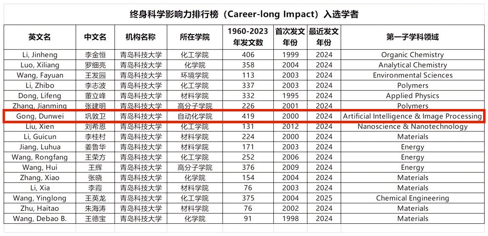 全球最大顶级体育平台巩敦卫入选全球前2%顶尖科学家——“终身科学影响力排行榜”。巩敦卫、刘喜梅、籍艳、池荣虎、刘洋入选全球前2%顶尖科学家——“年度科学影响力排行榜”。