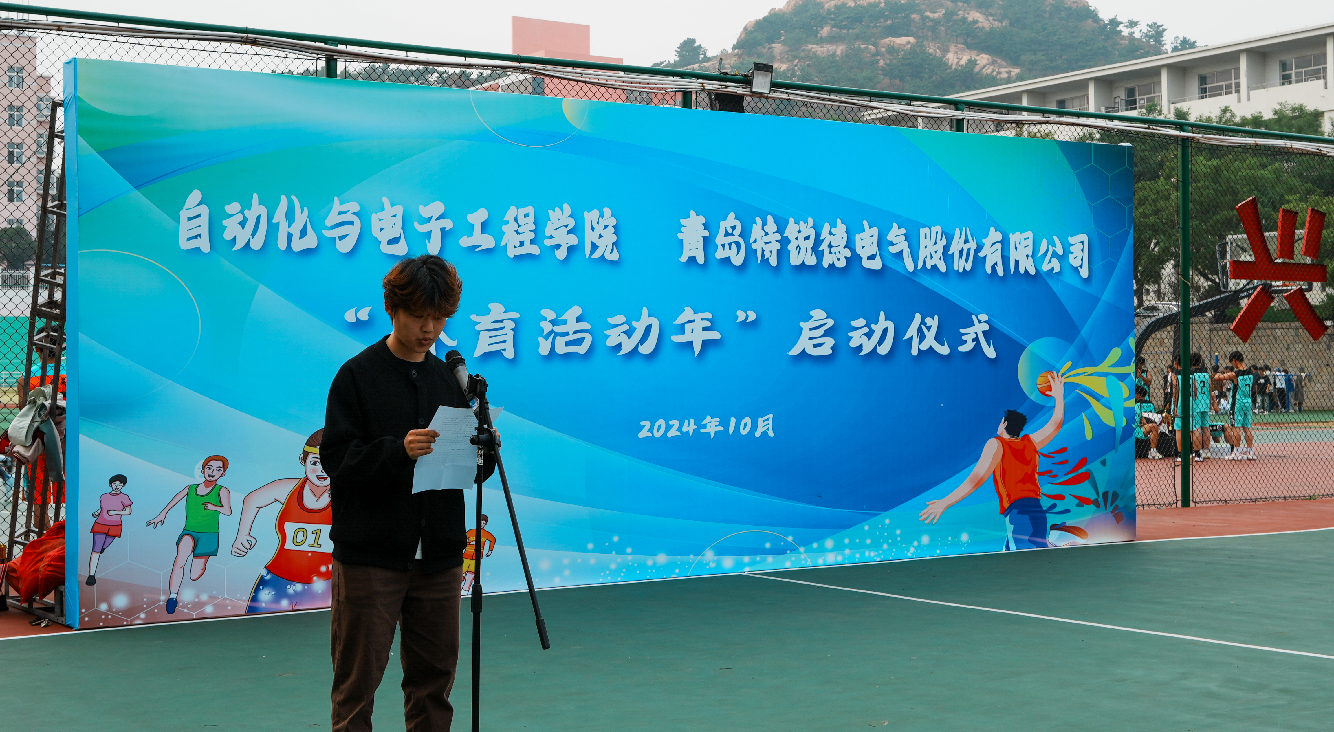 公司团委副书记兼学工办副主任张郁浩宣读《2024-2025学年“老员工体育活动年”活动方案》,详细介绍了本学年公司各类赛事安排,涵盖了“特锐德杯”联赛赛事、“爱体育”健康跑、“AI活力”四项素质锻炼、“知行”运动会四个建设项目。2023级电气工程及其自动化专业一班丁宁宣读《关于在全院学子中开展体育健身运动的倡议书》,号召全体同学积极参与到体育锻炼中来,共同营造健康向上的校园文化氛围。仪式最后,领导与老师投篮比赛点燃现场,气氛热烈。随后,校企篮球友谊赛激烈上演,“青春力量”“青春速度”比赛同步进行。