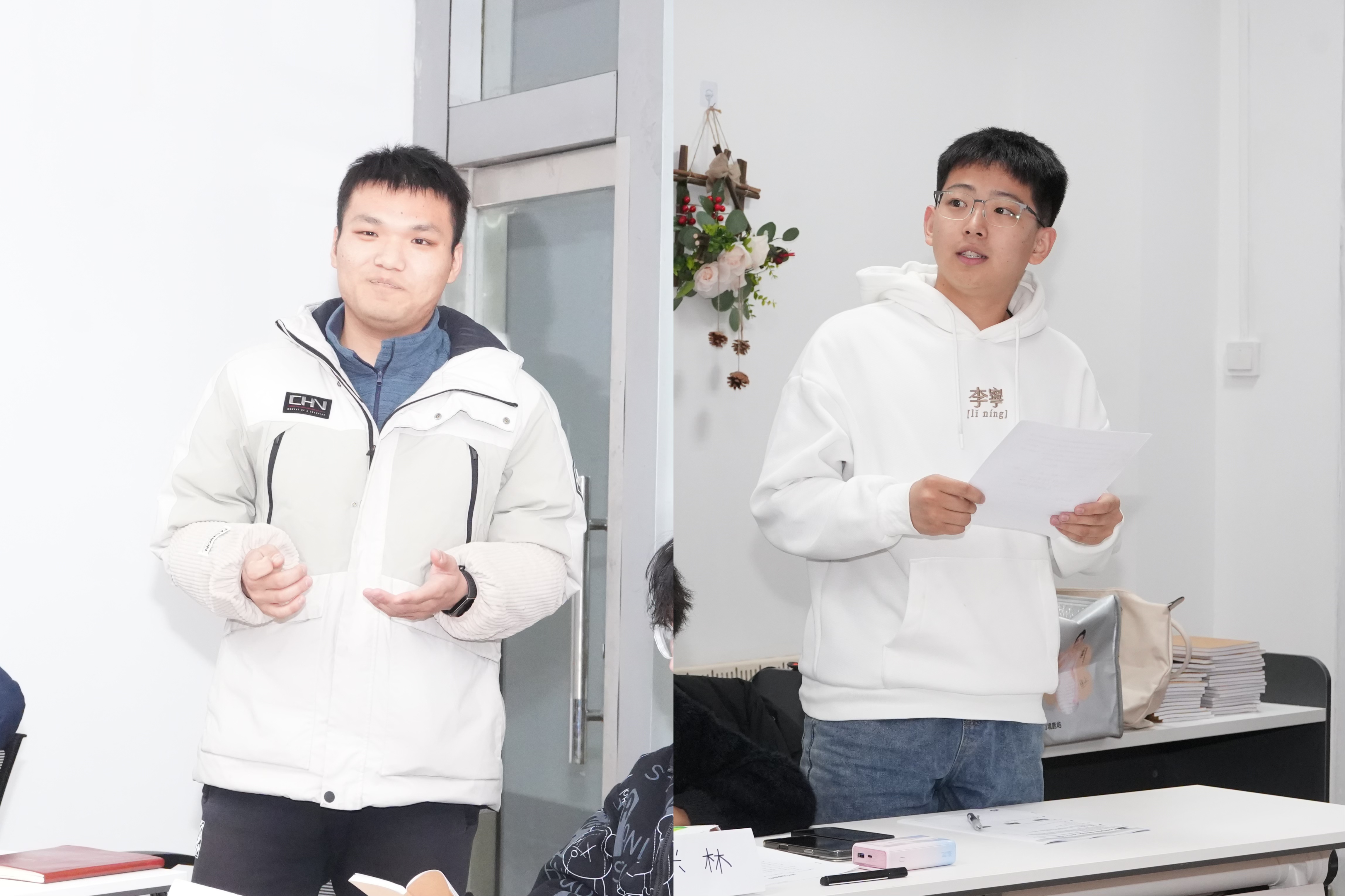 雷静以“三年后想成为怎样的自己?”“如何看待入党这一神圣抉择?”“如何切实履行班干部的职责与使命?”三个深刻而富有启发性的问题为锚,强调要审视当前的学习、工作与生活状态,鼓励其设定清晰、可实现的短期与长期目标,以更加成熟、专业、有担当的面貌迎接未来的挑战与机遇;要反思入党动机的纯洁性,理解党的宗旨与使命,坚定理想信念,提升政治素养;要发扬唯实惟先、善作善成的工作作风,锤炼领导力与责任感。张郁浩聚焦“关键少数”、“工作作风”、“业务能力”以及“实战技巧”四个层面,提出要发挥班团委“关键少数”的作用,明确责任分工,确保每一项工作都能精准定位、精准施策。同时,他要求新生骨干们务必以严谨务实的工作态度,不断强化驱动保障,力促各项工作落到实处、取得实效。李卓林对公司德育、品行分细则展开了详细解读,明确了各项工作的标准和要求,为新生骨干们提供了清晰的工作指南。丁雅琼对入学以来新生班团委开展的各项工作进行了总结点评,充分肯定了班团委取得的成绩,并指出了当前班级管理工作中存在的问题和不足,要求大家敏锐研判问题,以问题为导向,挂图作战,确保各项工作有力有序推进。