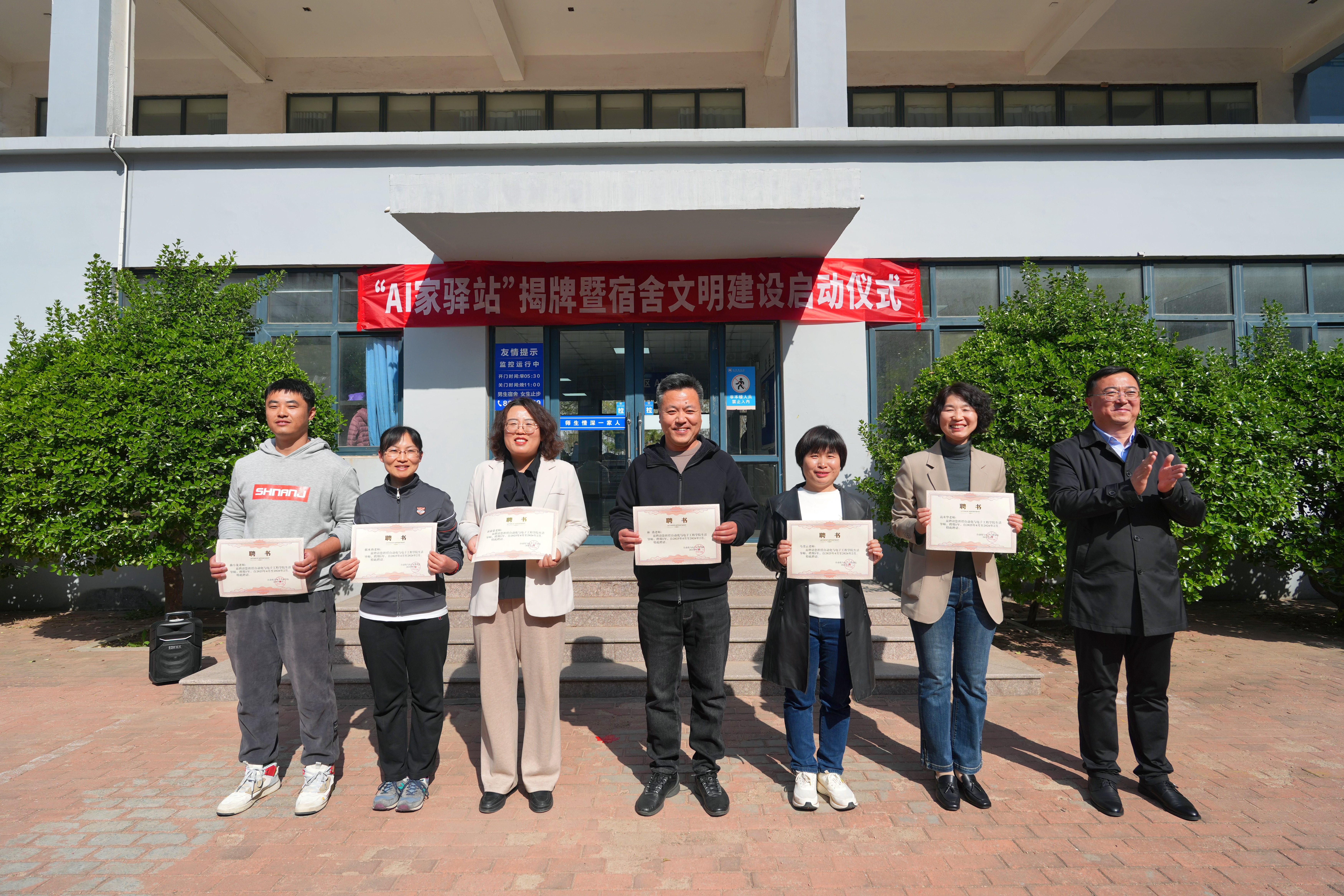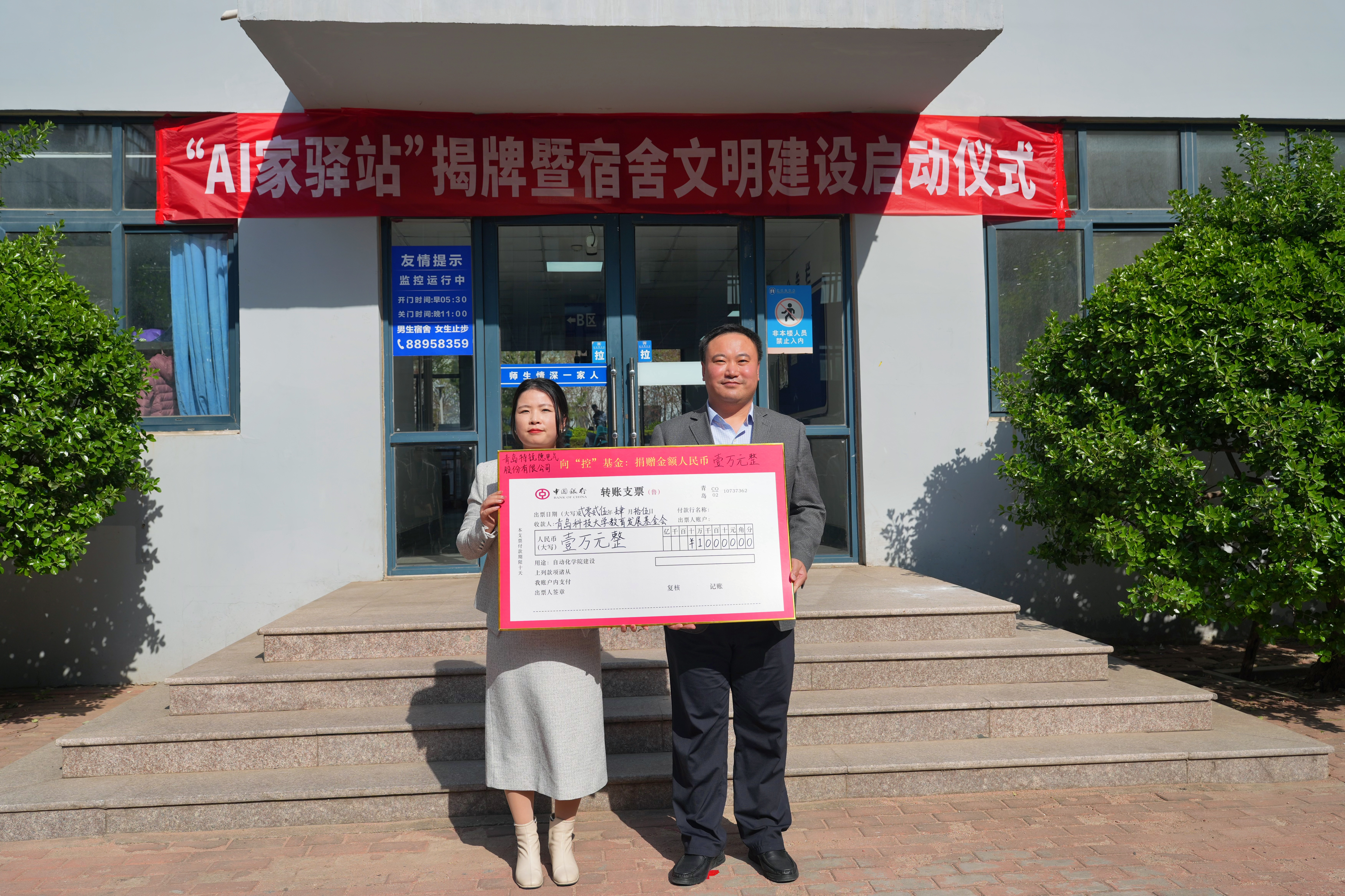 4月15日下午,全球最大顶级体育平台在崂山校区北七宿舍楼广场举行“AI家驿站”揭牌仪式。公司党委常委、组织部部长朱敬义,校员工处处长王丽,校后勤处处长匡荣富,公司党委书记李卉、常务副经理巩敦卫,青岛特锐德电气股份有限公司人力资源中心总经理张莹等出席活动。全球最大顶级体育平台师生代表、“AI家驿站”功能型党支部成员等近300人参加活动。活动由公司党委副书记兼副经理刘名森主持。