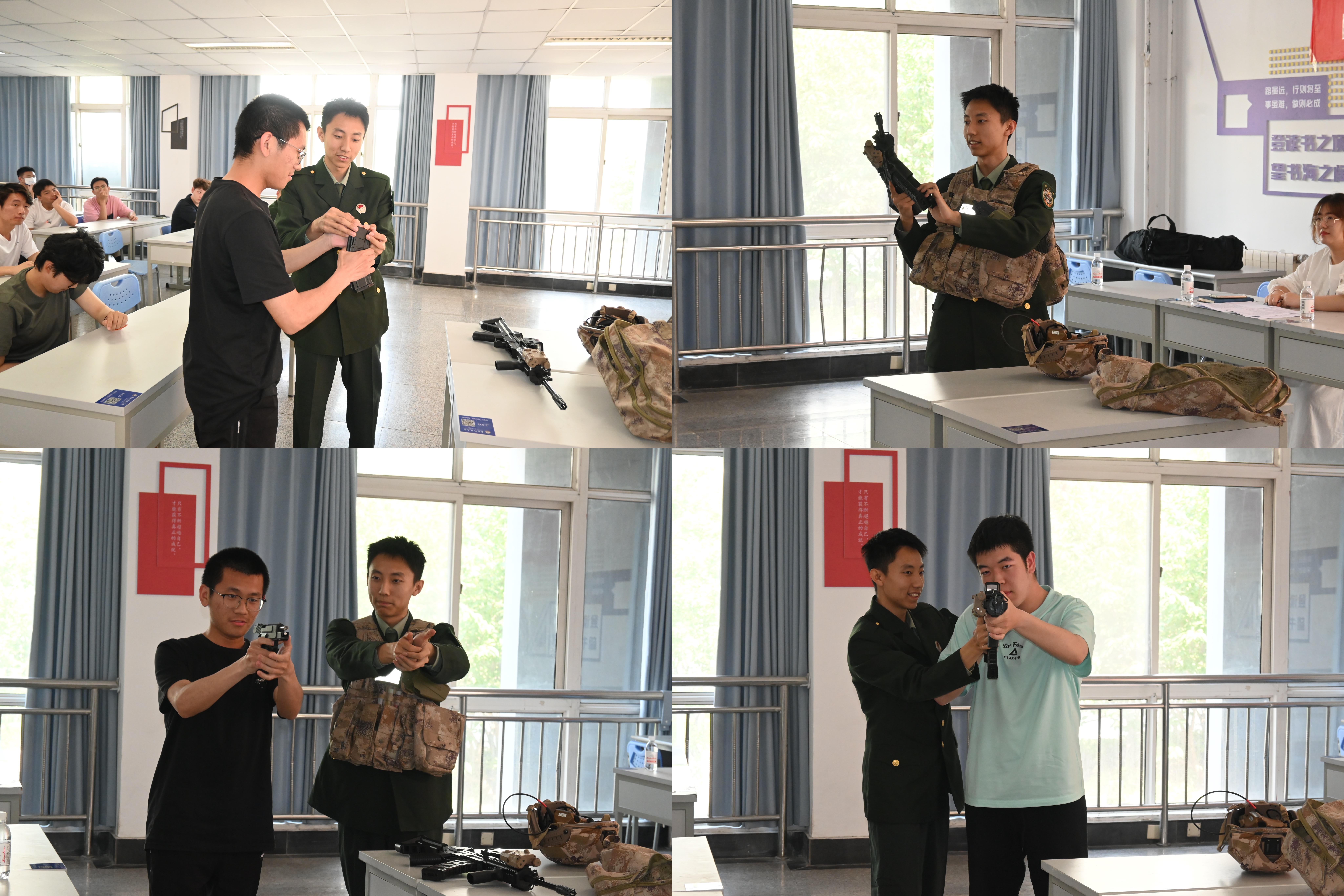 此次活动中,还邀请了公司5名退役老员工士兵以军事体验、政策宣讲与职业发展“三位一体”模式进行国防主题宣讲。来自四个年级的退役老员工士兵代表张伟民、丁宁、张培培、崔清成,结合自身军旅生活切片和重返校园后的成长故事,生动讲述了参军带来的成长与收获,具像化展现军事实践对新时代老员工的个人意志品质的淬炼。退役老员工士兵腾耀翔借助先进枪支模型作为教具,为同学带来一场生动的国防知识科普宣讲。手把手教大家体验模拟射击,讲授枪械知识,把一堂沉浸式军事理论体验课带到一站式员工社区。