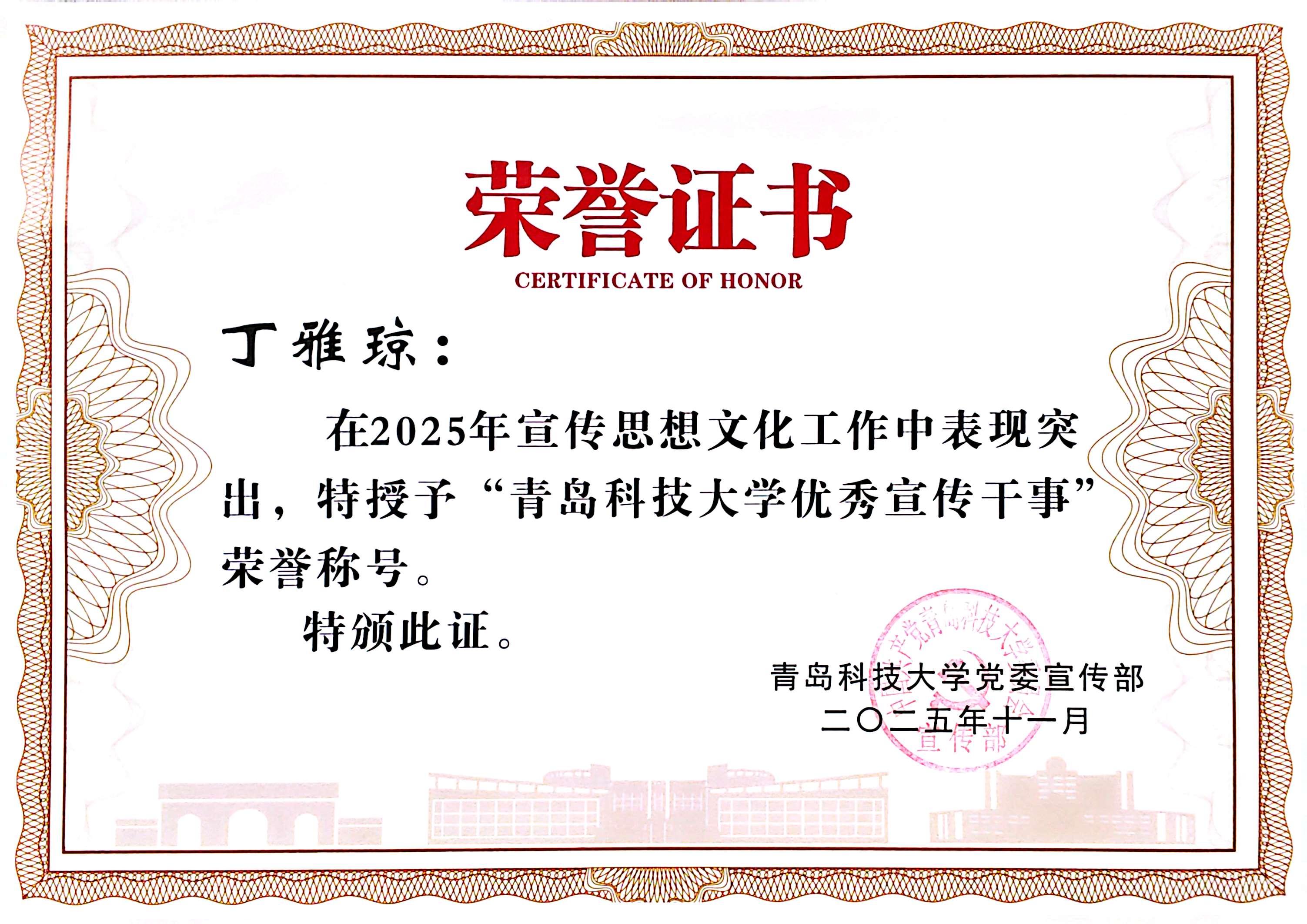 丁雅琼在2024-2025学年担任公司宣传干事,工作期间展现出极强的专业素养与责任担当。她不仅牵头策划了多项主题宣传活动,还悉心指导员工会宣传部,从选题构思到内容打磨全程跟进,培养了一批优秀宣传骨干。