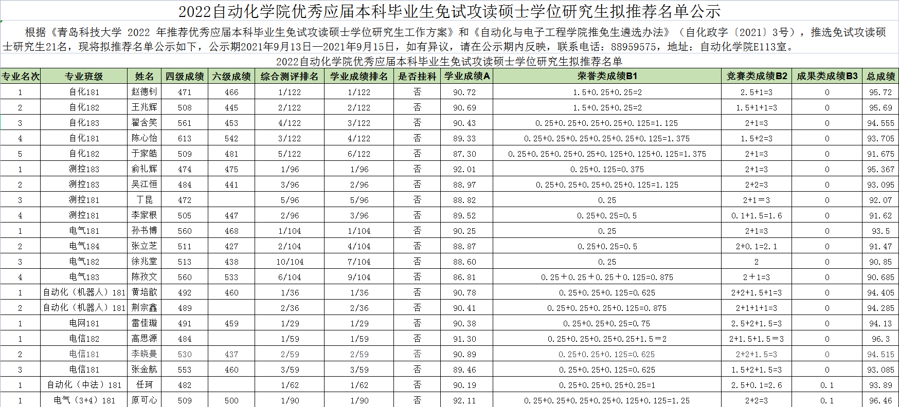 2022优秀应届本科毕业生免试攻读硕士学位研究生拟推荐名单公示