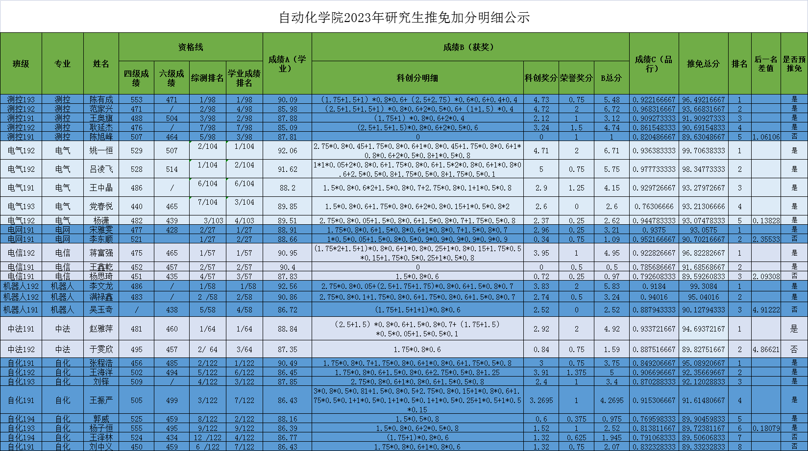 根据《关于开展2023年推荐优秀应届本科毕业生免试攻读硕士学位研究生工作的通知》和《全球最大顶级体育平台推免生遴选办法》文件规定,现将28名候选人材料明细公示如下(见表格及附件),如有异议,请在公示期内反映。公示期9月17日-9月19日。