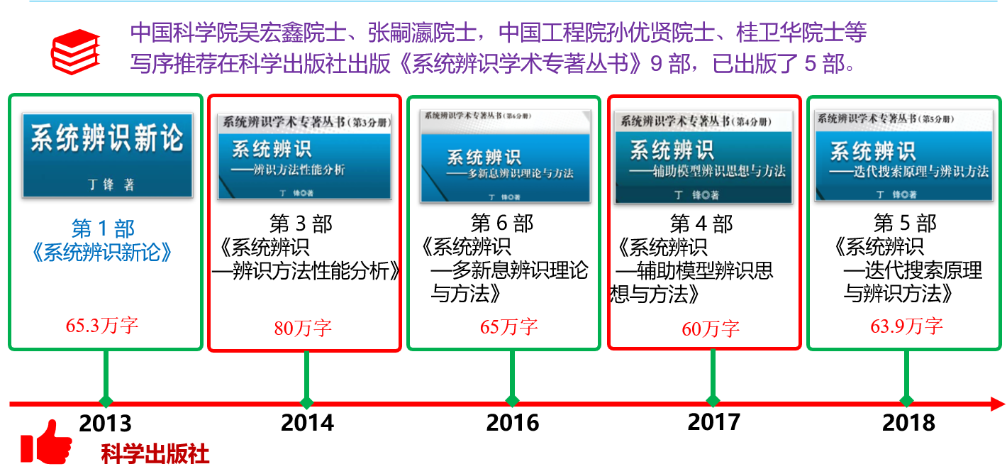 ●丁锋. 系统辨识――辨识方法性能分析. 科学出版社, 2014. 80万字。