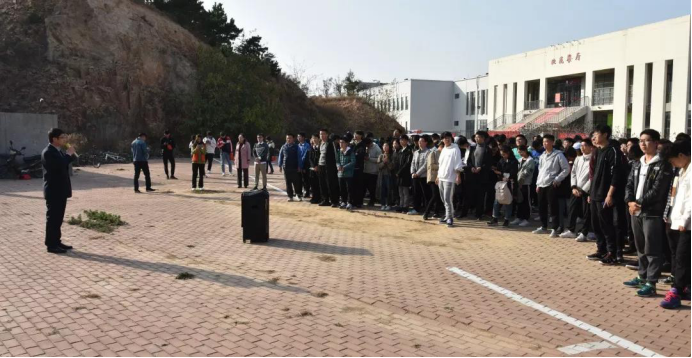 1点30分还未到,同学们就早早在指定地点等候了,待同学们就绪后,赵老师便开始了消防知识的宣讲。开门见山,赵老师首先向大家提出消防的四个能力:眼、嘴、手、腿。