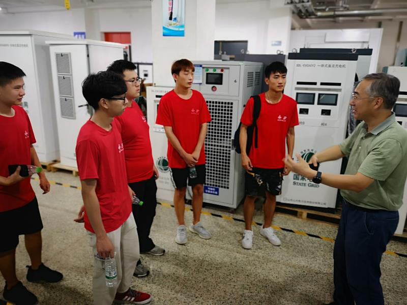 在生产车间,我们看到一排排刚刚下线的充电桩。李教授介绍,充电桩是新旧动能转换反映在人民生活领域的一个最直观的代表。随着新旧动能转换的开展,国家政策大力扶持新能源汽车的普及,现在市场上主流的新能源汽车主要是电动汽车和油电混合型汽车,这类汽车能否快速普及最重要因素就是充电是否方便、快捷,蓄电池容量和寿命是否足够长,虽然现在生产充电桩的企业很多,但是他们生产的充电桩设备具有环保、效率高、充电快、保护蓄电池的特性,技术含量属于全国领先水平,做到这一点主要是实现充电电压、电流、蓄电池温度等关键因素的高精度自动化控制,这些都属于我们电气自动化专业领域范畴。