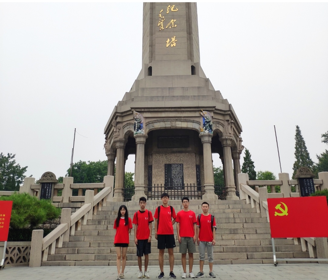 图为调研团成员在革命烈士纪念塔前合影。中国青年网通讯员 付宏祥 摄