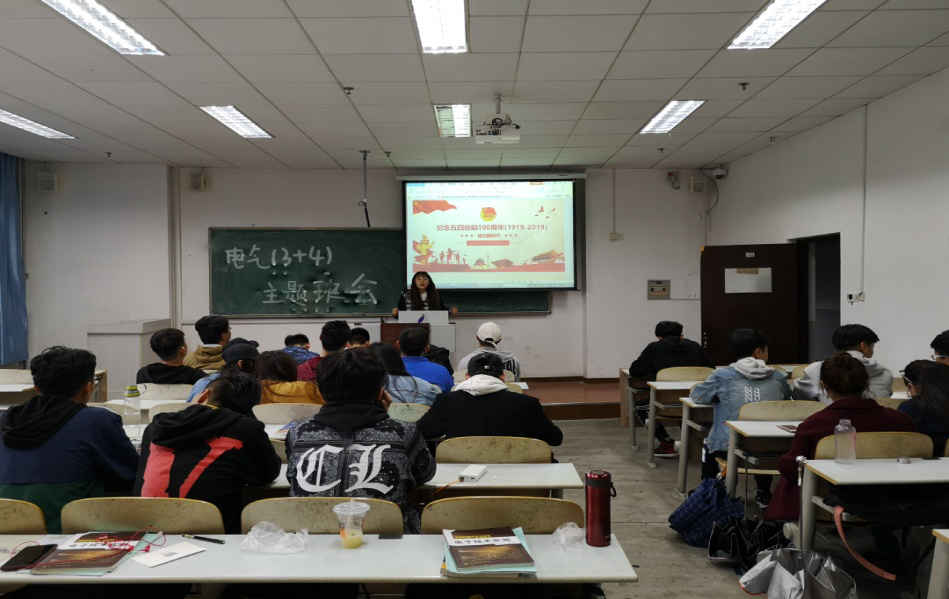 为传承五四精神,纪念五四运动100周年,激励和引领班级团员青年弘扬以爱国主义为核心的民族精神,4月23日,电气(3+4)171班在明德楼239举行了“新青年,耀青春”纪念五四运动100周年主题班会。班会由团支部书记杨文佳主持。