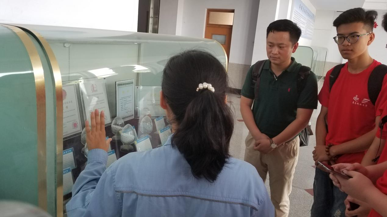 调研团在徐翠翠的带领下走进了科研开发楼的大厅。大厅里陈列着各种催化剂样品。齐鲁石化的研究人员克服行业的难题,对第四硫磺装置脱气装置和新型催化剂进行了合理改造,最大限度地降低了二氧化硫的排放量,既提高了工厂效益,同时也保护了环境,处于世界先进水平。此项技术生动地诠释了新旧动能转换这一核心理念。调研团听完研究人员的讲解,不仅增长了知识,而且更加深入的理解领悟了“新旧动能转换”的意义和重要作用,同时充分认识到新旧动能转换在化工尾气处理方面带来的巨大变化。