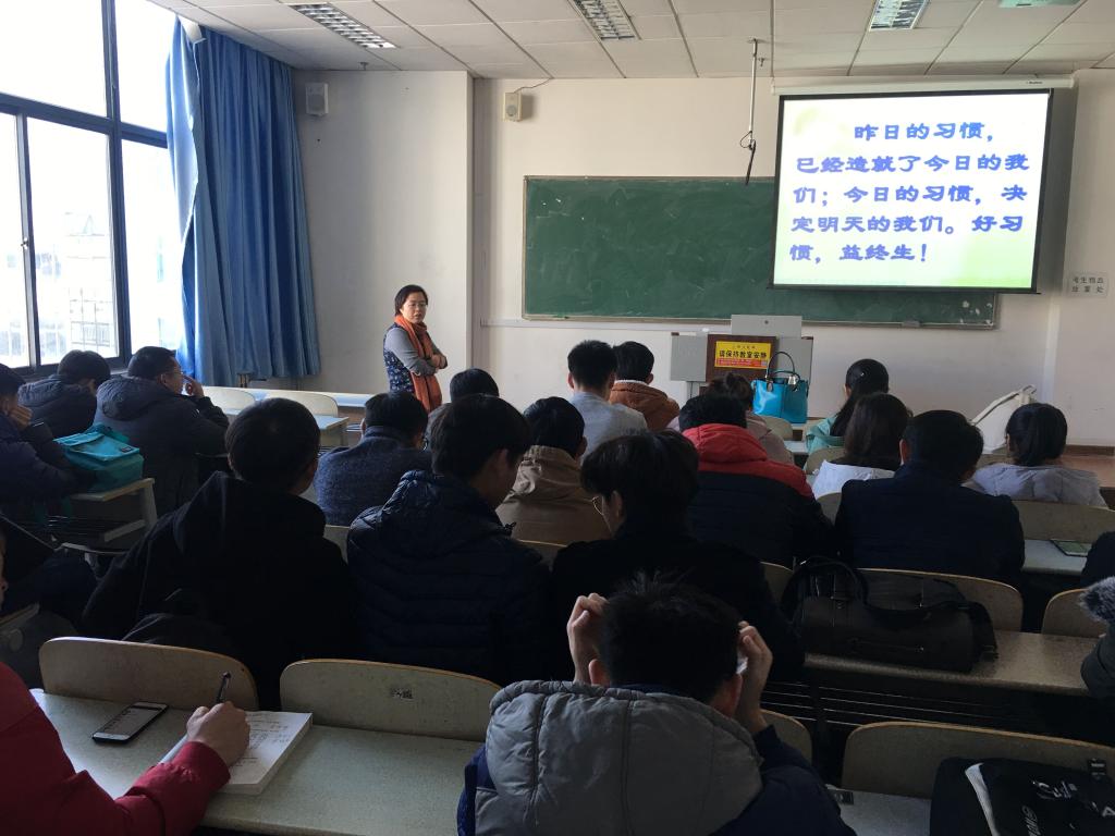 班会由各班班长主持,他们的一番开场发言表现了全体班委们想要尽心尽力为同学服务的态度,亦是对自身做出要求,承诺要做好班级的模范,带领班级同学共创优秀班集体。随后,各班班主任围绕三个方面对同学提出要求。首先强调到,要增强自律与自我管理意识,同学们在大学的学习与生活中要想有所得,前提是要有对自己的自我管制力,能够约束自己。其次,便是合作精神,包括同寝室人的合作,同班级人的合作以及同公司和公司间的合作,在合作中达到共赢,提升自己。最后,也是最重要的一点——诚信,诚信做人,诚信应考,做人做事要诚信,人无信而不立,尤其在期末考试中,一定要诚信考试,建设诚信考场。最后,各班级以每人言一梦想为尾,表达了自己对即将到来的2018年的美好期望,勉励同学们一心一意努力前行,朝着梦想努力奋进。