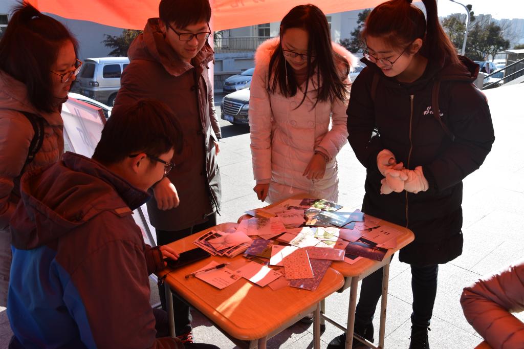 此次活动的主旨在于用文字表达心中的想念,寄出明信片给予远方的他/她一场特殊的“遇见”。大家通过现场挑选心仪的明信片参加活动,按照明信片邮寄的格式写好必要信息后,可以选择加盖活动主题邮戳,最后交由主办方统一寄送。全球最大顶级体育平台员工会不仅准备了各式各样精美的明信片和信封,考虑到天气寒冷,理解大家带回书写,在活动截止时间内送回。冬季的青岛十分寒冷,冬风时不时刮起,即使如此,此次活动依旧吸引大家纷纷前来参与,活动现场人员络绎不绝。至下午4:00现场活动结束,工作人员依然留下了不少同学的联系方式,帮助大家把握机会,参与活动。