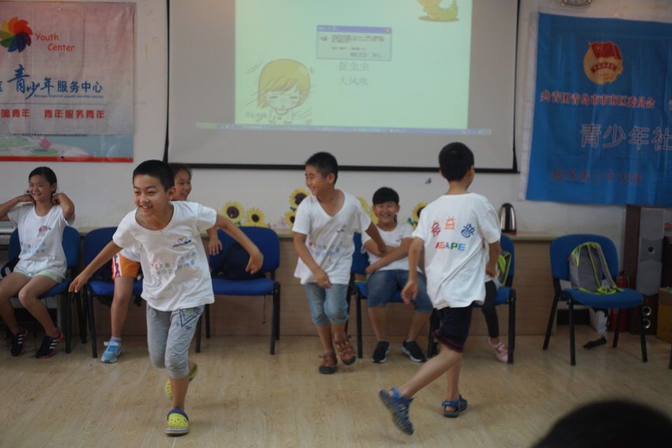 孩子们制作纪念册的同时,实践团成员也就是各组的志愿者们也正紧锣密鼓地挑选这四天的照片制作PPT。等孩子们的作品完成之后,各组上台展示这几天的收获和成果。“这是我们在义卖时,当时我卖出去的东西最多”,“这是在奥帆博物馆,我们一起在那个帆船前面拍的照片”……志愿者在播放PPT的同时,听着孩子们的欢声笑语,和孩子们一同回忆过去四天的难忘时刻。。