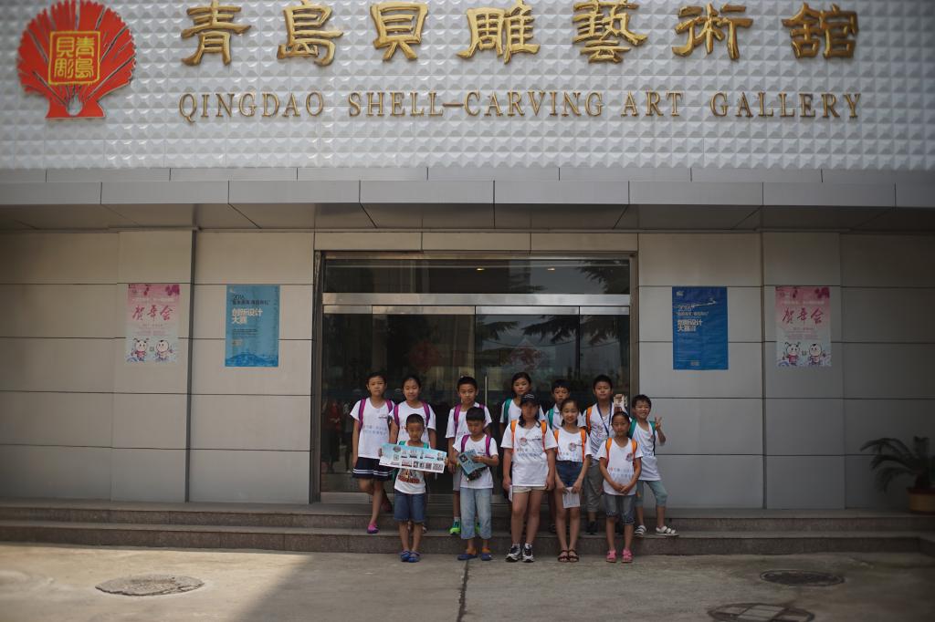 在现场,孩子们在解说员和老师的带领下,一个展厅一个展厅地参观。参观中,解说员详细讲解每件贝雕艺术品的背景、来源和意义,加深了孩子们对贝雕文化的了解,激发了他们的好奇心和求知欲。其中有位工艺师正在现场雕刻贝雕作品,一个个厚厚的贝壳,在她灵巧的手中被雕琢成了轻薄如纸、几可乱真的牡丹花瓣。孩子们在旁边跃跃欲试,但又小心翼翼生怕碰坏了这些精美的艺术作品。他们不时地向解说员咨询贝雕艺术及博物馆展品的相关问题,合理的运用义卖筹得的资金,解决了本次出行的全部费用。