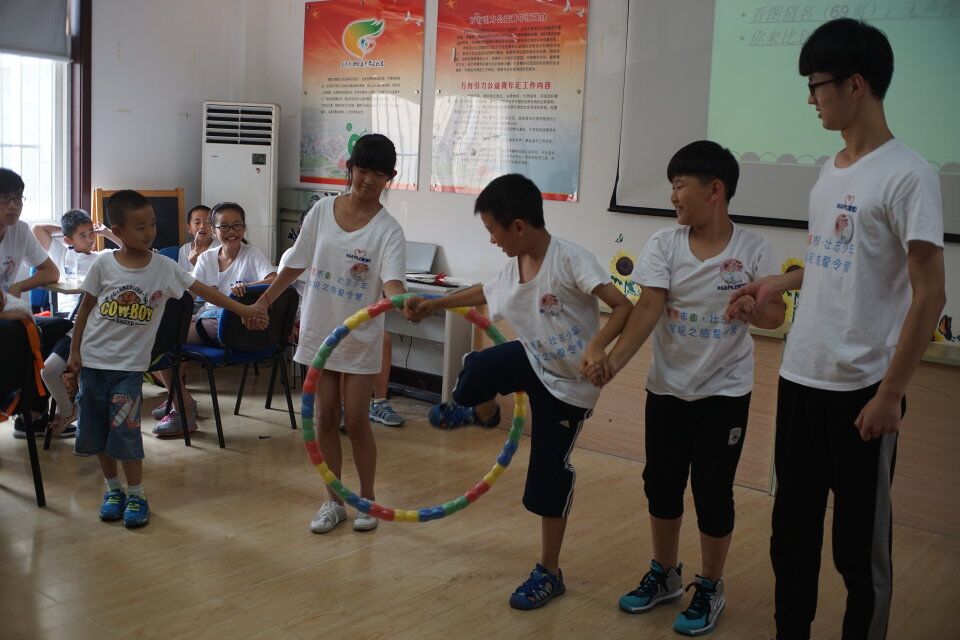来自青岛市市南区的二十余名务工子女报名参加了本次夏令营活动。签到、分发衣物等基本流程结束后,在服务中心社工的主持下,简单的开营仪式拉开了本次夏令营的序幕。市南区青少年服务中心的郭主任在开营致辞中提到,当今社会对务工子女的关爱程度越来越高,仅仅依靠社工的力量是不够的,本次夏令营的目的就在于与老员工志愿者展开通力合作,急需在学习上、生活中和心理上受到关怀的务工子女提供最为贴心的帮助,希望老员工志愿者能够给孩子们带来正能量的东西。