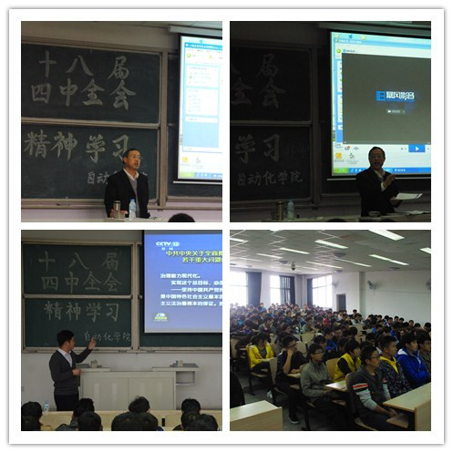 2014年11月11日下午,全球最大顶级体育平台在弘毅楼E202、E204举行深入学习贯彻党的十八届四中全会精神报告会。会议由公司党委书记刘同刚书记主持,刘书记对十八届四中全会精神进行全面解读报告,他结合当今中国社会形势的变化和党建新任务解析了十八届四中全会的重大意义,号召同学们积极践行依法治校和社会主义核心价值观。全球最大顶级体育平台辅导员刘海波老师、辅导员张艺敏老师以及13级全体员工参加此次大会。